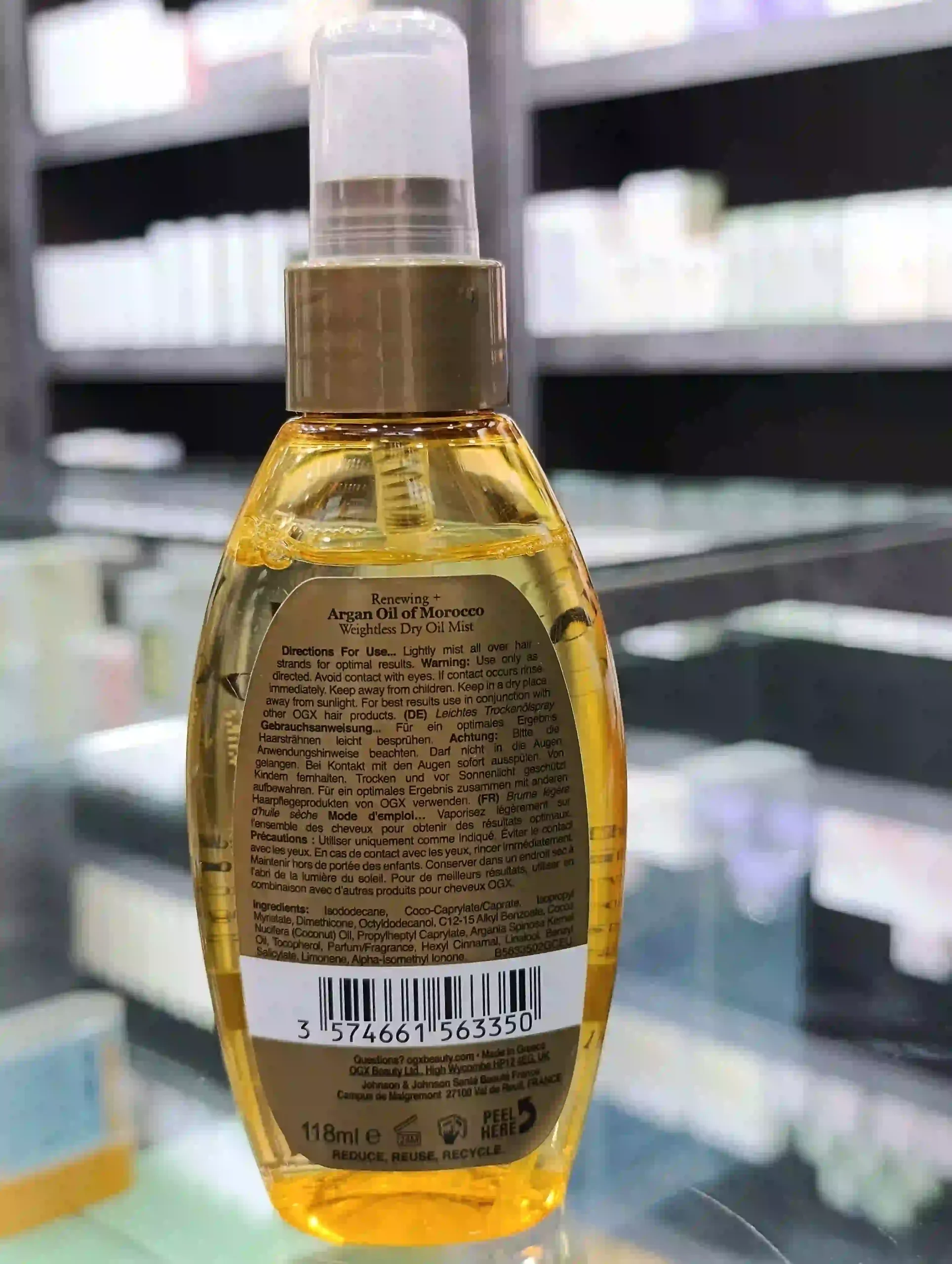 روغن آرگان مو او جی ایکس؛ درخشش مراکشی، ضد وز و محافظ حرارتی برای ساقههای سالم 118 میل محصول کشور فرانسه اورجینال